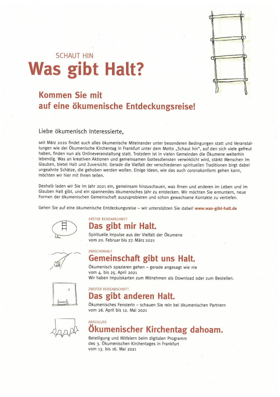 Schaut hin ... WAS GIBT HALT? ... Kommen Sie mit auf eine ökumenische Entdeckungsreise!